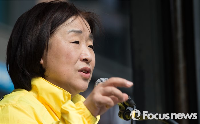 (고양=포커스뉴스) 제20대 국회의원 선거를 하루 앞둔 12일 오후 심상정 정의당 고양갑 후보가 경기 고양시 롯데마트 화정점 앞에서 '국민들께 드리는 글'을 발표하고 있다.