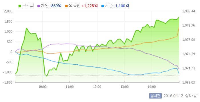 이날 코스피는 전일대비 0.01% 오른 1970.50에 장을 시작했다. 지수는 장중 하락세로 전환하기도 했으나, 외국인이 매수로 가닥을 잡으면서 상승폭을 확대했다.