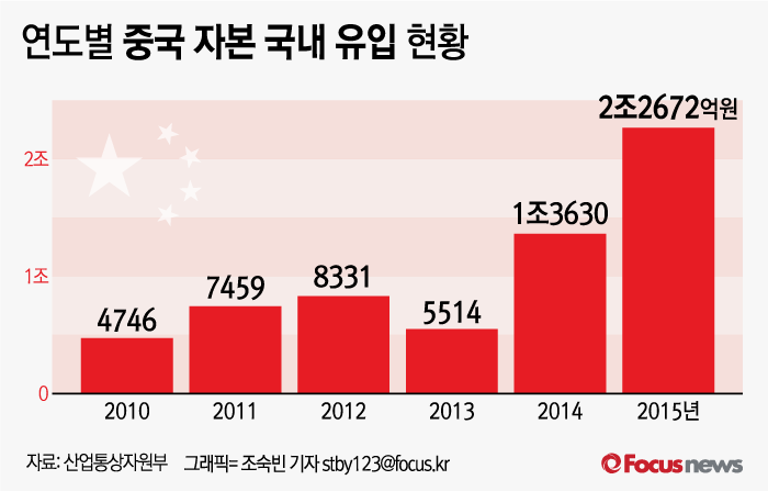 | △ [그래픽] 연도별 중국 자본 국내 유입 현황 |