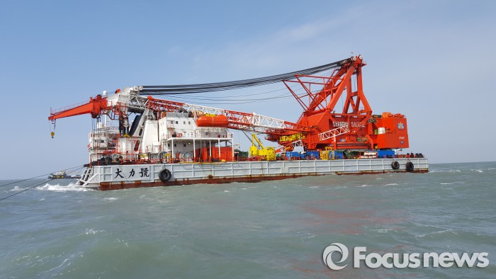 그러나 3m가 넘는 파고로 인해 인양작업이 이뤄지는 상하이샐비지 달리하오(대력호)에 접안하지 못했다.