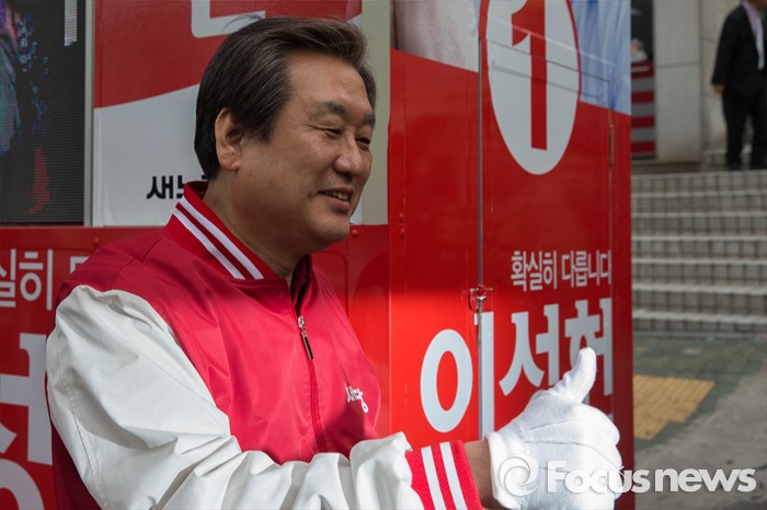(서울=포커스뉴스) 20대 총선을 하루 앞둔 12일 오후 서울 마포구 신촌역 일대에서 김무성 새누리당 대표와 이성헌 서대문갑 후보가 선거유세를 하고 있다.
