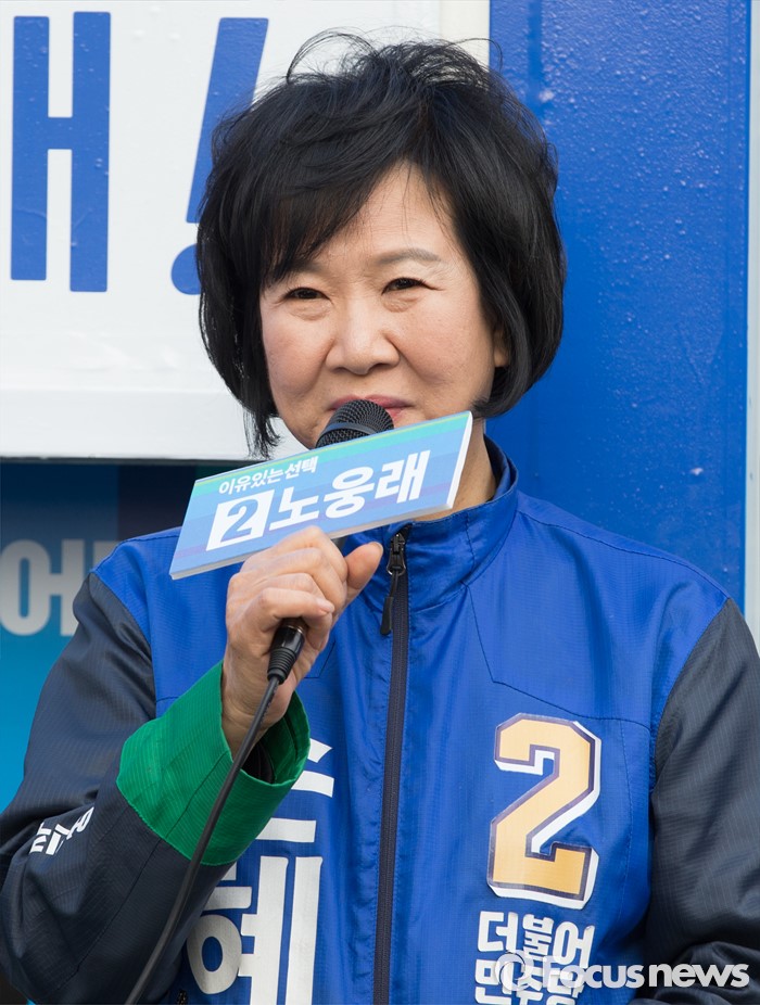 (서울=포커스뉴스) 2016 제20대 국회의원선거를 하루 앞둔 12일 오후 서울 마포구 공덕역 인근 경의선숲길공원에서 노웅래 더불어민주당 마포갑 후보, 김종인 더불어민주당 비대위 대표 겸 선대위원장, 손혜원 마포을 후보가 유권자들에게 지지를 호소하고 있다.