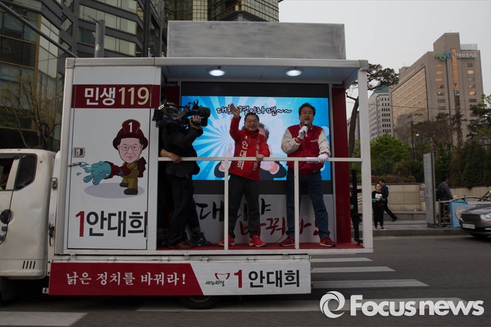 | △ 김무성-안대희 도로위 선거유세 |