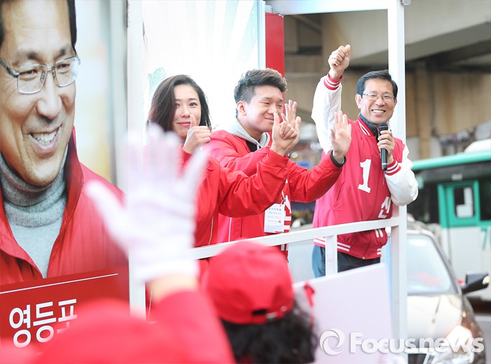 (서울=포커스뉴스) 4.13총선을 하루 앞둔 12일 오후 서울 영등포구 당산역 인근에서 박선규 새누리당 영등포갑 후보가 선거유세를 하고 있다.