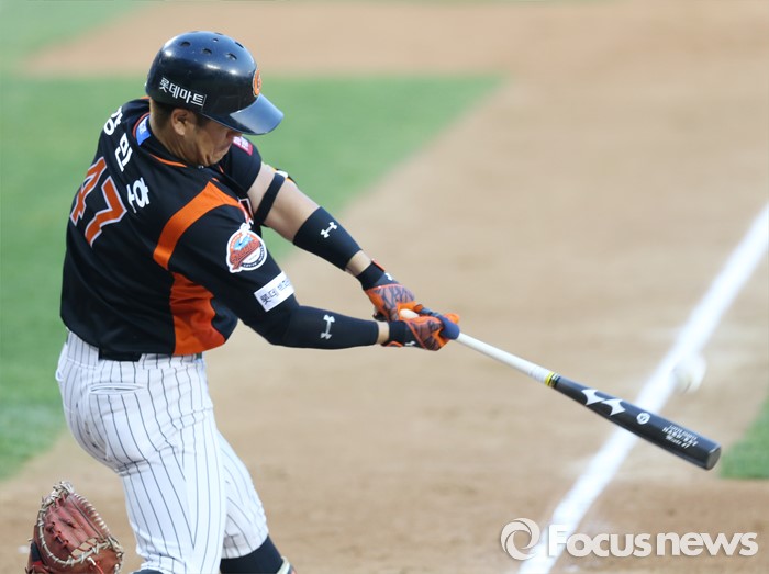 (서울=포커스뉴스) 12일 서울 잠실구장에서 열린 2016 프로야구 롯데-LG 경기 1회초 2사 2루에서 롯데 강민호가 좌얼 2점 홈런을 치고 있다.