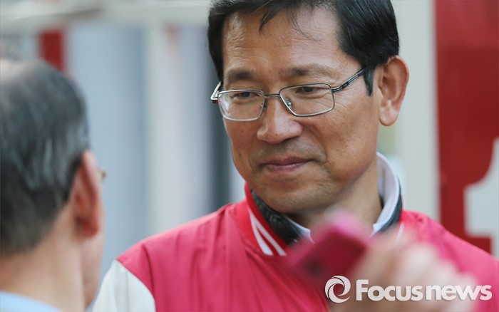 (서울=포커스뉴스) 4.13총선을 하루 앞둔 12일 오후 서울 영등포구 당산역 인근에서 박선규 새누리당 영등포갑 후보가 한 시민과 대화를 나누고 있다.