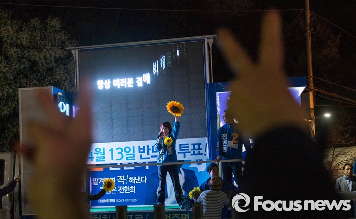 | △ 마지막 유세에서 시민들 향해 인사하는 전현희 |