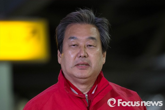 (서울=포커스뉴스) 20대 총선을 하루 앞둔 12일 오후 서울 용산구 서울역 KTX 플랫폼에서 김무성 새누리당 대표가 부산으로 가기 전 기자들의 질문을 받고 있다.