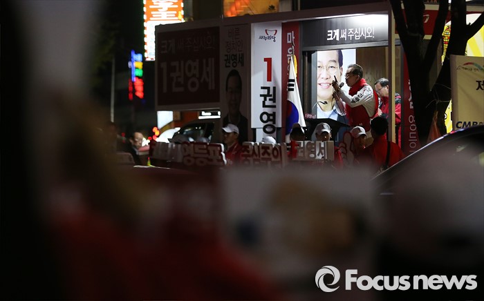 (서울=포커스뉴스) 4.13총선을 하루 앞둔 12일 오후 서울 영등포구 신풍역역 인근에서 권영세 새누리당 영등포을 후보가 지지를 호소하고 있다.