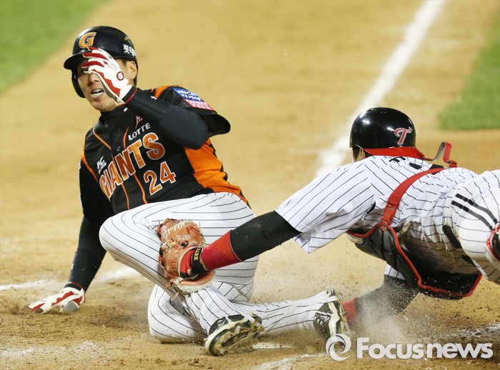 홈에서 슬라이딩하는 김문호
