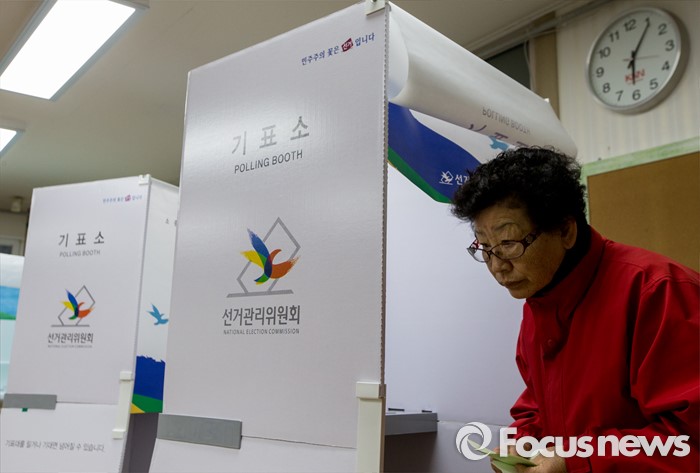 (부산=포커스뉴스) 제20대 국회의원선거일인 13일 오전 부산 영도구 동삼1동 제6투표소에서 유권자들이 투표하고 있다.