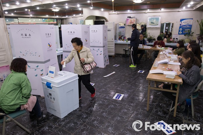 (서울=포커스뉴스) 제20대 국회의원선거일인 13일 오전 서울 서대문구 뉴헤어미용실에 위치한 홍은제2동 제2투표소에서 유권자들이 투표하고 있다.