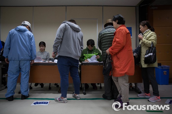(서울=포커스뉴스) 제20대 국회의원선거일인 13일 오전 서울 성북구의 한 투표소에서 유권자들이 투표를 하고 있다.