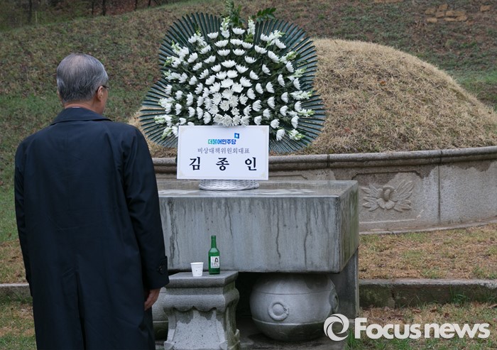 (서울=포커스뉴스) 20대 총선 투표일인 13일 오전 김종인 더불어민주당 비대위 대표 겸 선대위원장이 서울 강북구 수유동에 위치한 자신의 조부인 가인 김병로 선생 묘소를 찾아 성묘를 하고 있다.