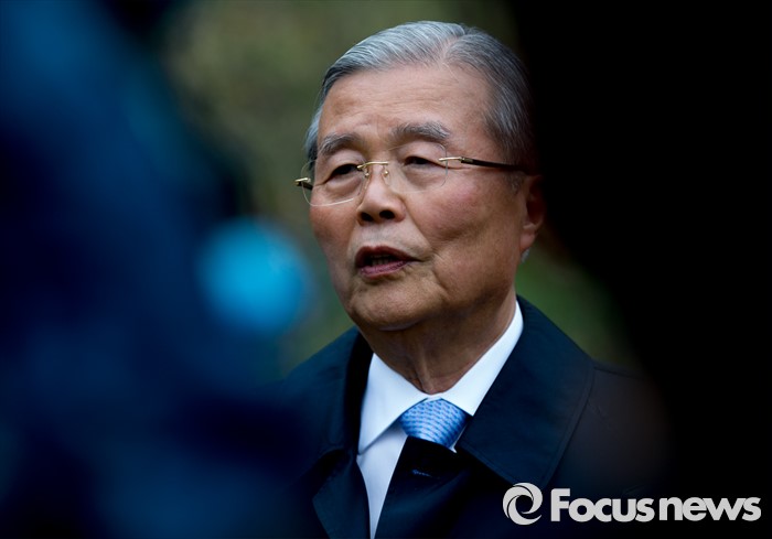 | △ 취재진 질문 답하는 김종인 |
