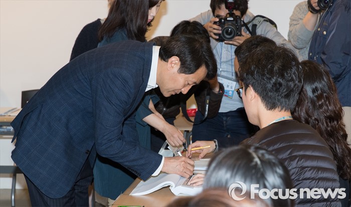 (서울=포커스뉴스) 2016 제20대 국회의원선거날인 13일 오전 서울 종로구 동성고등학교 백주년기념관에 설치된 투표소에서 오세훈 새누리당 종로 후보와 부인인 송현옥 씨가 투표를 하기 위해 본인학인 절차를 하고 있다.