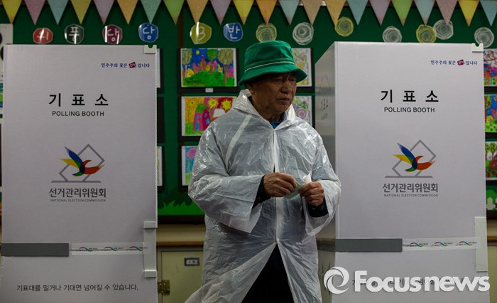 (대구=포커스뉴스) 제20대 국회의원선거날인 13일 오전 대구 수성구 청림초등학교에 마련된 투표소에서 유권자가 투표를 하고 있다.
