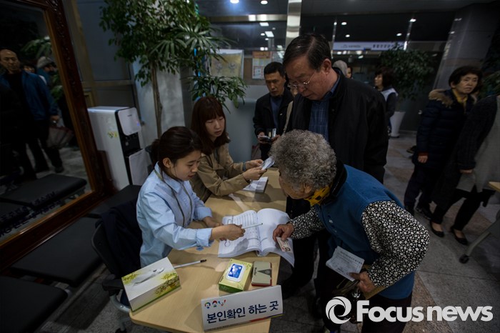(대구=포커스뉴스) 제20대 국회의원선거날인 13일 오전 대구 수성구 만촌주민센터에 마련된 투표소에서 유권자들이 투표를 하고 있다.