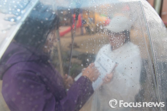 (광주=포커스뉴스) 제20대 국회의원 선거일인 13일 오전 광주 광산구 산월동 봉산초등학교에서 출구조사 방송관계자들이 출구조사를 하고 있다.