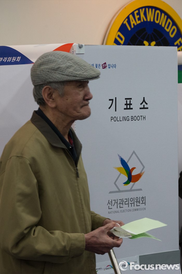 (서울=포커스뉴스) 제20대 국회의원선거일인 13일 오전 서울 강서구 화곡제8동 제5투표소에서 유권자가 투표를 마치고 기표소를 나오고 있다.