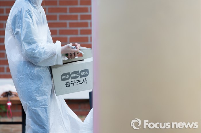 (광주=포커스뉴스) 제20대 국회의원 선거일인 13일 오전 광주 광산구 산월동 봉산초등학교에서 출구조사 방송관계자들이 출구조사를 하고 있다.