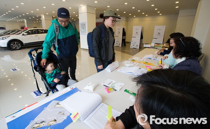 (서울=포커스뉴스) 제20대 국회의원선거일인 13일 오전 서울 광진구 능동 제3투표소에서 한 가족이 투표를 하기 위해 신분확인 하고 있다.
