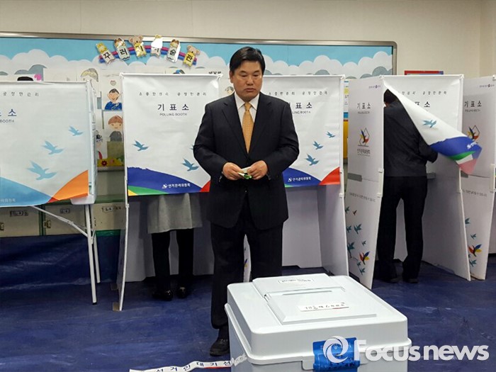 (대구=포커스뉴스) 제20대 국회의원선거날인 13일 오전 대구 북구 운암초등학교에 마련된 투표소에서 홍의락 무소속 대구 북구을 후보가 투표를 하고 있다.