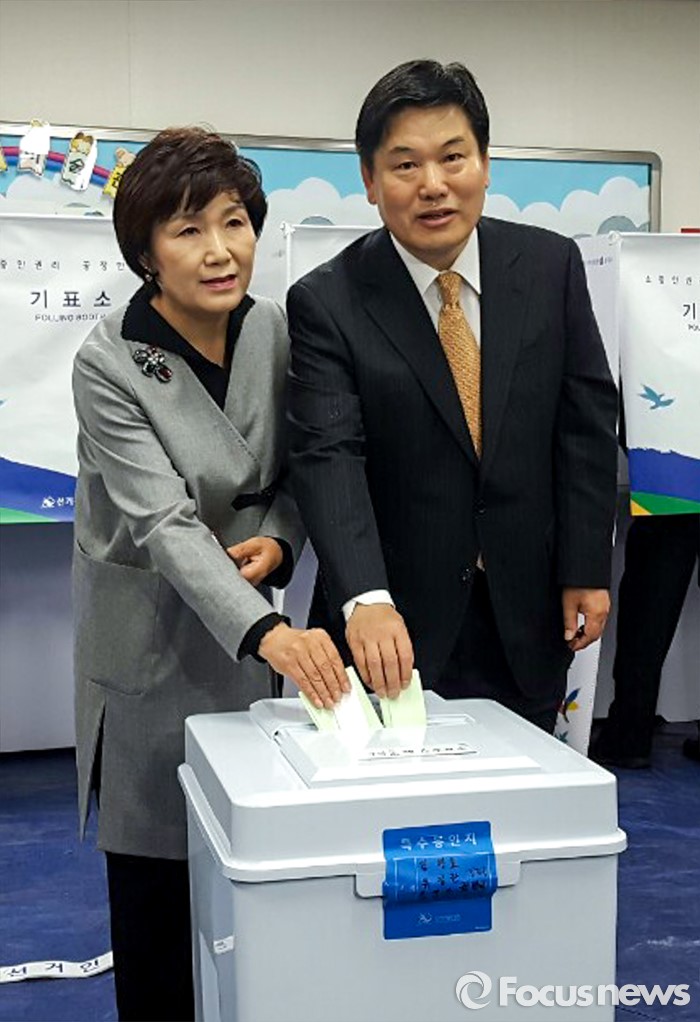 (대구=포커스뉴스) 제20대 국회의원선거날인 13일 오전 대구 북구 운암초등학교에 마련된 투표소에서 홍의락 무소속 대구 북구을 후보가 투표를 하고 있다.