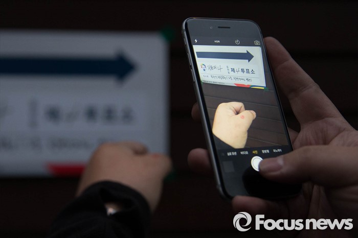제 20대 총선의 유권자 수는 총 4210만398명이다. 자신의 지역구별 투표장은 선관위 홈페이지를 통해 확인할 수 있다. (선관위 홈페이지-투표장 확인하기)(서울=포커스뉴스) 제20대 국회의원선거일인 13일 오전 서울 성북구의 한 투표소에서 유권자가 투표 인증샷을 남기고 있다. 2016.04.13 이승배 기자
