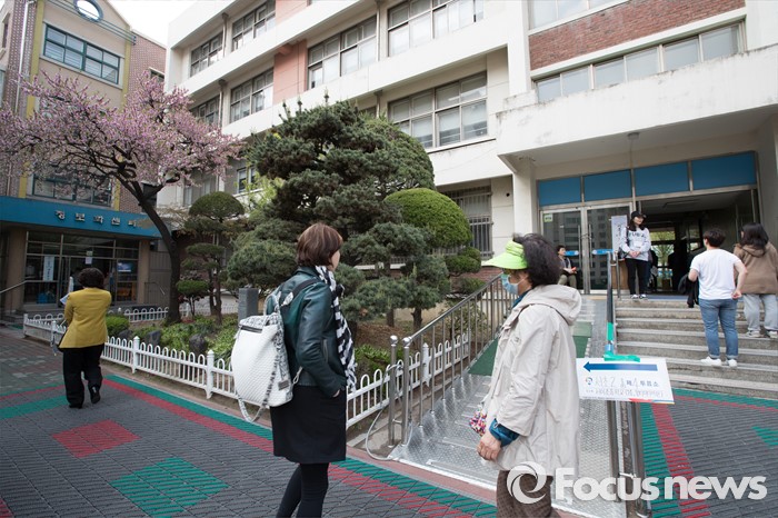(서울=포커스뉴스) 2016 제20대 국회의원선거날인 13일 오후 서울 서초구 서이초등학교에 마련된 투표소로 유권자들이 향하고 있다.