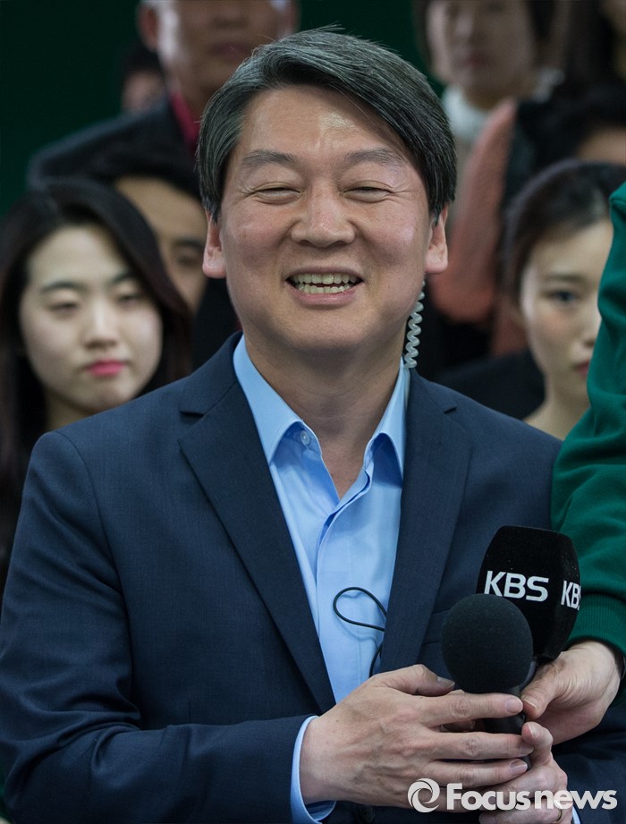 (서울=포커스뉴스) 안철수 국민의당 상임공동대표가 13일 오후 서울 마포구 당사 개표상황실에서 지도부와 함께 개표 방송을 지켜보며 환하게 웃고 있다.
