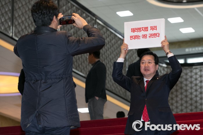 (서울=포커스뉴스) 13일 오후 6시 KBS·MBC·SBS 지상파 방송3사가 공동조사, 발표한 4·13 총선 출구조사 결과에 따르면 대전 동 지역구에서는 새누리당 이장우 후보가 43.3%로 더불어민주당 강래구 후보가 40.4%로 경합 중으로 나타났다.(서울=포커스뉴스) 이장우(오른쪽) 새누리당 의원이 23일 오후 서울 여의도 국회 로텐더홀에서 테러방지법과 관련한 야당의 필리버스터에 대해, 규탄성명을 발표한 뒤 기념사진을 찍고 있다. 2016.02.23 박철중 기자 지상파 3사 4·13 총선 출구조사 결과에 따르면 대전 동구에서 더불어민주당 강래구 후보가 40.4%로 새누리당 이장우 후보와 경합 중인 것으로 나타났다. <사진제공=중앙선거관리위원회>