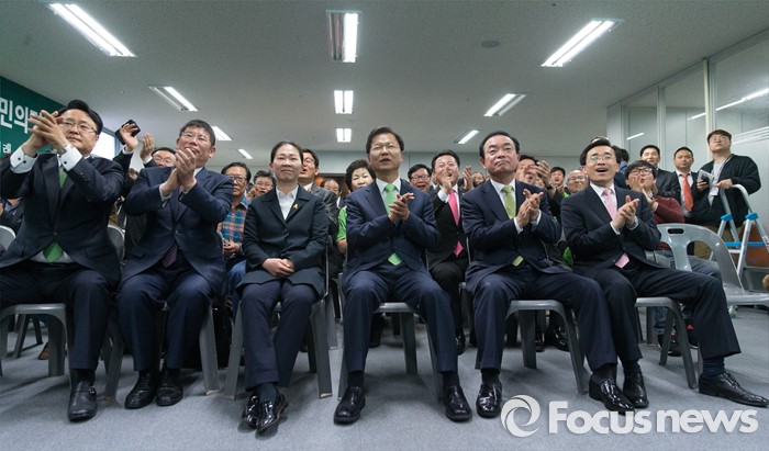(광주=포커스뉴스) 제20대 국회의원 선거일인 13일 오후 광주 서구 국민의당 광주광역시당에서 국민의당 지역구 후보자들이 모여 출구조사 결과를 시청하고 있다. 왼쪽부터 송기석 서구갑 후보, 김경진 북구갑 후보, 권은희 광산구을 후보, 천정배 서구을 후보, 장병완 동구남구 갑 후보, 김성환 광주 동구청장 재선거 후보.