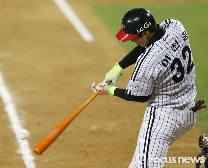(서울=포커스뉴스) 13일 서울 잠실구장에서 열린 2016 프로야구 롯데-LG 경기 2회말 2사 만루에서 LG 이천웅이 2타점 중전적시타를 날리고 있다.