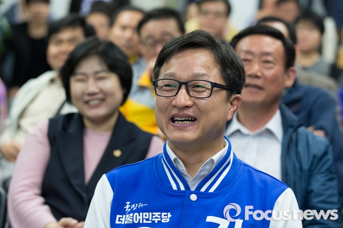 (서울=포커스뉴스) 13일 오후 서울 은평구 강병원 더불어민주당 은평구을 후보의 사무실에서 강후보가 지지자들과 함께 개표방송을 보고 있다.