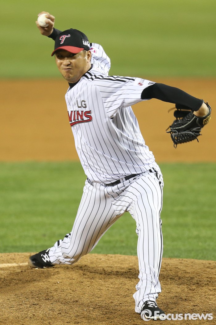 (서울=포커스뉴스) 13일 서울 잠실구장에서 열린 2016 프로야구 롯데-LG 경기 7회초 LG 투수 신승현이 투구하고 있다.