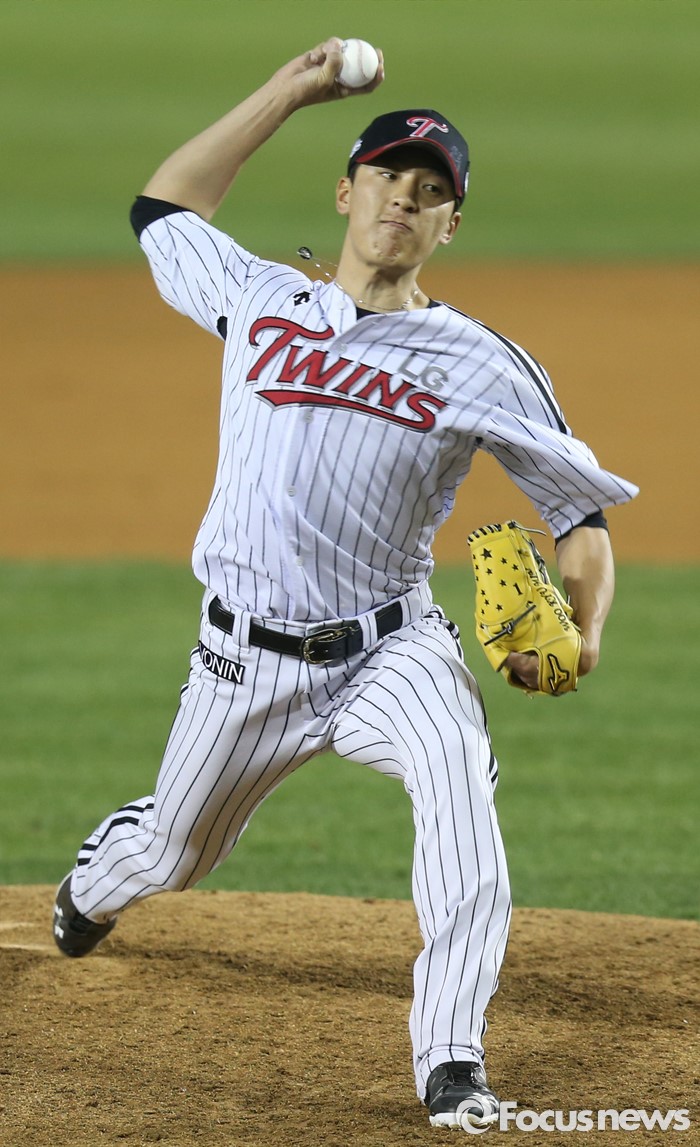 (서울=포커스뉴스) 13일 서울 잠실구장에서 열린 2016 프로야구 롯데-LG 경기 7회 LG 투수 최동환이 투구하고 있다.