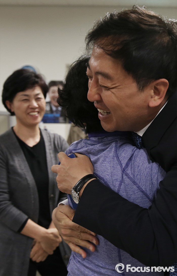 (서울=포커스뉴스) 제20대 국회의원 선거날인 13일 오후 서울 강서구에 위치한 선거사무실에서 금태섭 더불어민주당 강서갑 후보가 지지자들과 인사를 하고 있다.