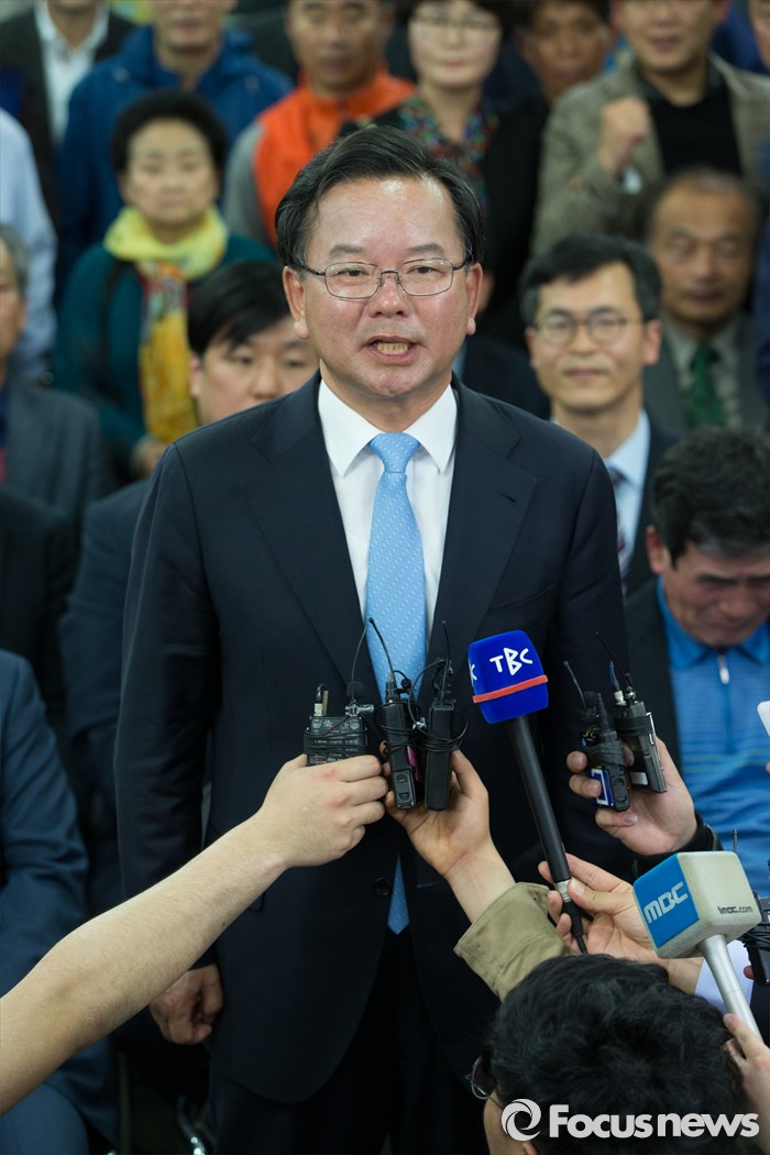 (서울=포커스뉴스) 13일 오후 11시 10분 현재 KBS는 대구 수성갑에 출마한 김부겸 더불어민주당 후보가 당선이 확실하다고 밝혔다.제20대 국회의원선거 출구조사를 통해 김부겸 더불어민주당 대구 수성갑 후보가 김문수 새누리당 대구 수성갑 후보를 제치고 당선이 예측된 13일 오후 대구 수성구 김 후보 선거사무소에서 김부겸 후보가 취재진과 인터뷰 하고 있다. 2016.04.13 강진형 기자