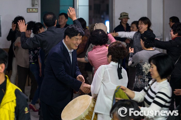 (대구=포커스뉴스) 제20대 국회의원선거 대구 북구을 선거구에서 당선이 확실시 된 무소속 홍의락 후보가 13일 오후 대구 북구 선거사무소에서 지지자들과 함께 기쁰을 만끽 하고 있다.