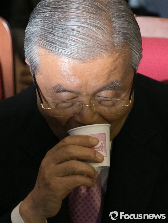 (서울=포커스뉴스) 20대 총선 투표일인 13일 오후 서울 여의도 국회 의원회관 대회의실에 마련된 더불어민주당 개표상황실에서 김종인 비대위 대표 겸 선대위원장이 물을 마시고 있다.