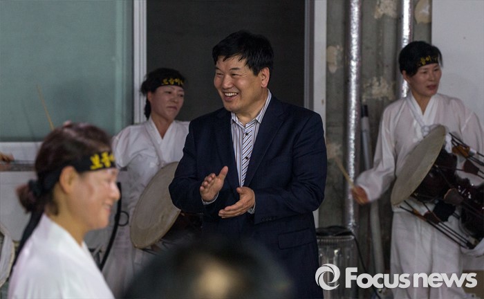 (대구=포커스뉴스) 제20대 국회의원선거 대구 북구을 선거구에서 당선이 확실시 된 무소속 홍의락 후보가 13일 오후 대구 북구 선거사무소에서 지지자들과 함께 기쁰을 만끽 하고 있다.