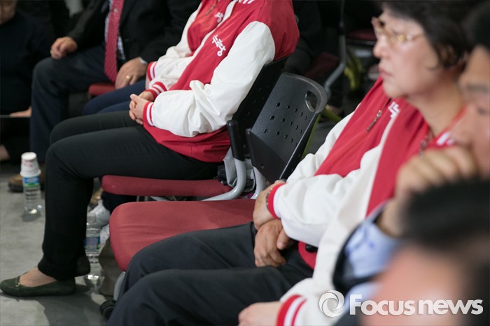 (서울=포커스뉴스) 제20대 국회의원 선거날인 13일 오후 서울 여의도 새누리당사에서 비례대표 후보들과 당직자들이 심각한 표정으로 개표방송을 시청하고 있다.