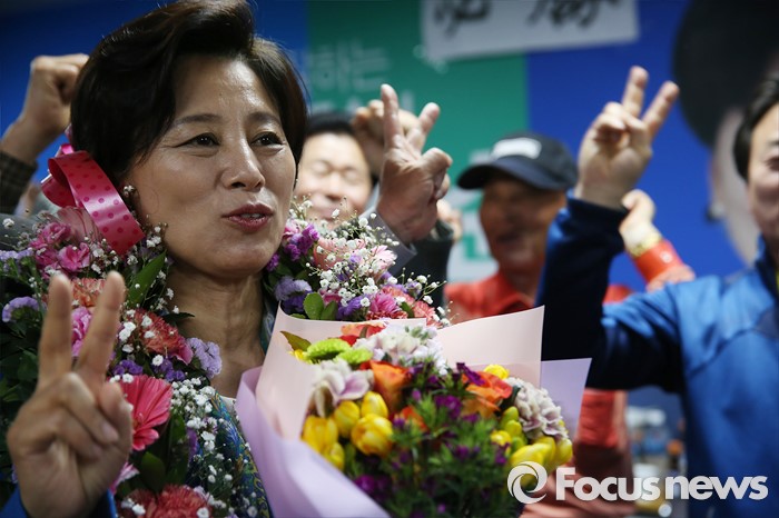 | △ 기뻐하는 남인순 더불어민주당 송파구병 후보 |