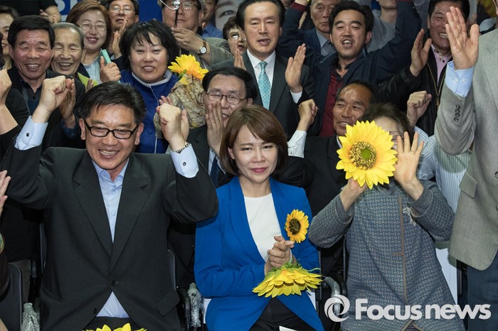 | △ 지지자들과 함께 기뻐하는 전현희 후보 |