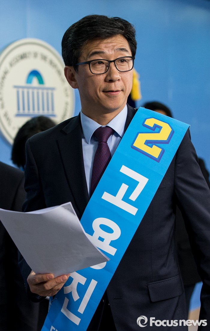 | △ 기자회견 마친 고용진 |