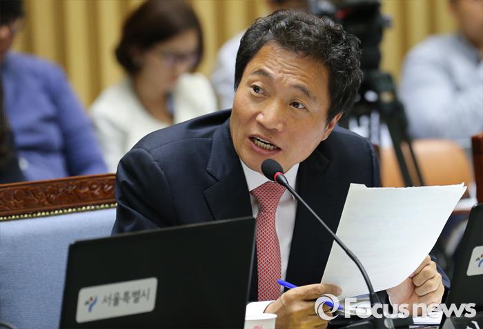 (서울=포커스뉴스) 14일 오전 1시35분 KBS는 개표율 83.5% 현재 인천 서갑 새누리당 이학재 후보가 44.5%를 득표해 당선이 확실하다고 밝혔다.6일 오전 서울시청에서 열린 국회 국토교통위원회의 서울시에 대한 국정감사에 참석한 이학재 새누리당 의원이 질의를 하고 있다. 2015.10.06 오장환 기자