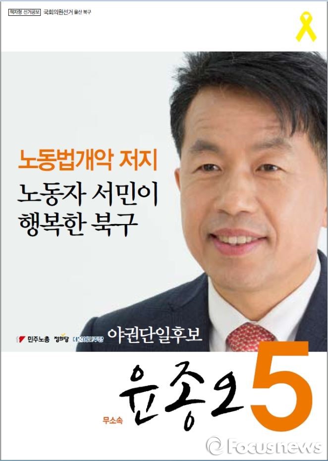 (서울=포커스뉴스) 현대자동차 울산공장 노동자 출신인 무소속 윤종오 후보가 새누리당 윤두환 후보를 누르고 20대 총선에 당선됐다.