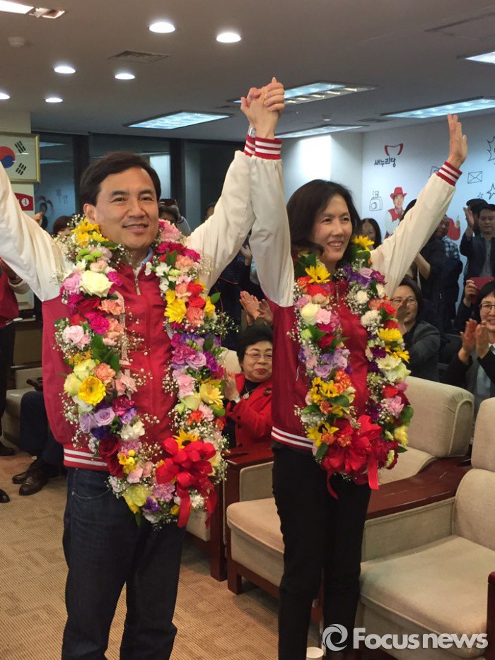 △1964년 강원도 춘천 출생 △성수고등학교, 서울대학교 법과대학 △제 28회 사법시험 합격 △사법연수원 제 18기 수료 △춘천지검 부장검사 △서울중앙지검 부장검사 △춘천지검 원주지청장 △국회 법제사법위원회 위원 △새누리당 원내부대표 △제 19대 국회의원(춘천=포커스뉴스) 14일 오전 2시29분경 제20대 국회의원 선거에서 강원도 춘천 선거구 김진태 후보가 당선되었다. 재선에 성공한 새누리당 김진태 후보는 부인과 함께 화환목걸이를 걸고 기쁨의 만세를 부르고 있다.2016.04.14 양해지 기자윤예송 기자