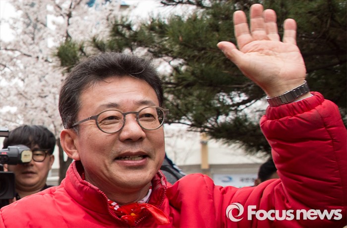 2위는 41.1%를 차지한 더불어민주당 정하영 후보가 차지했다.(김포=포커스뉴스) 8일 오후 경기 김포시 사우동 인근에서 열린 지원유세에 참석한 홍철호 새누리당 김포을 후보. 2016.04.12 양지웅 기자